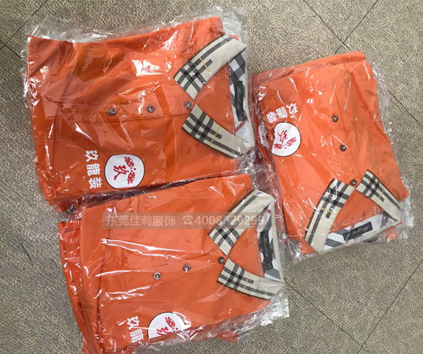 玖龍裝飾的吳總是通過(guò)老客戶介紹認(rèn)識(shí)的,因?yàn)槭亲鲅b飾行業(yè),所以對(duì)夏季工作服的要求,是吸汗透氣,而且形象亮眼,給人一種時(shí)尚低調(diào)有內(nèi)涵的感覺(jué)。吳總選中了一款橙色T恤衫,非常感謝吳總的理解,雖然延遲了交貨日期,但還是非常順利交貨了。
