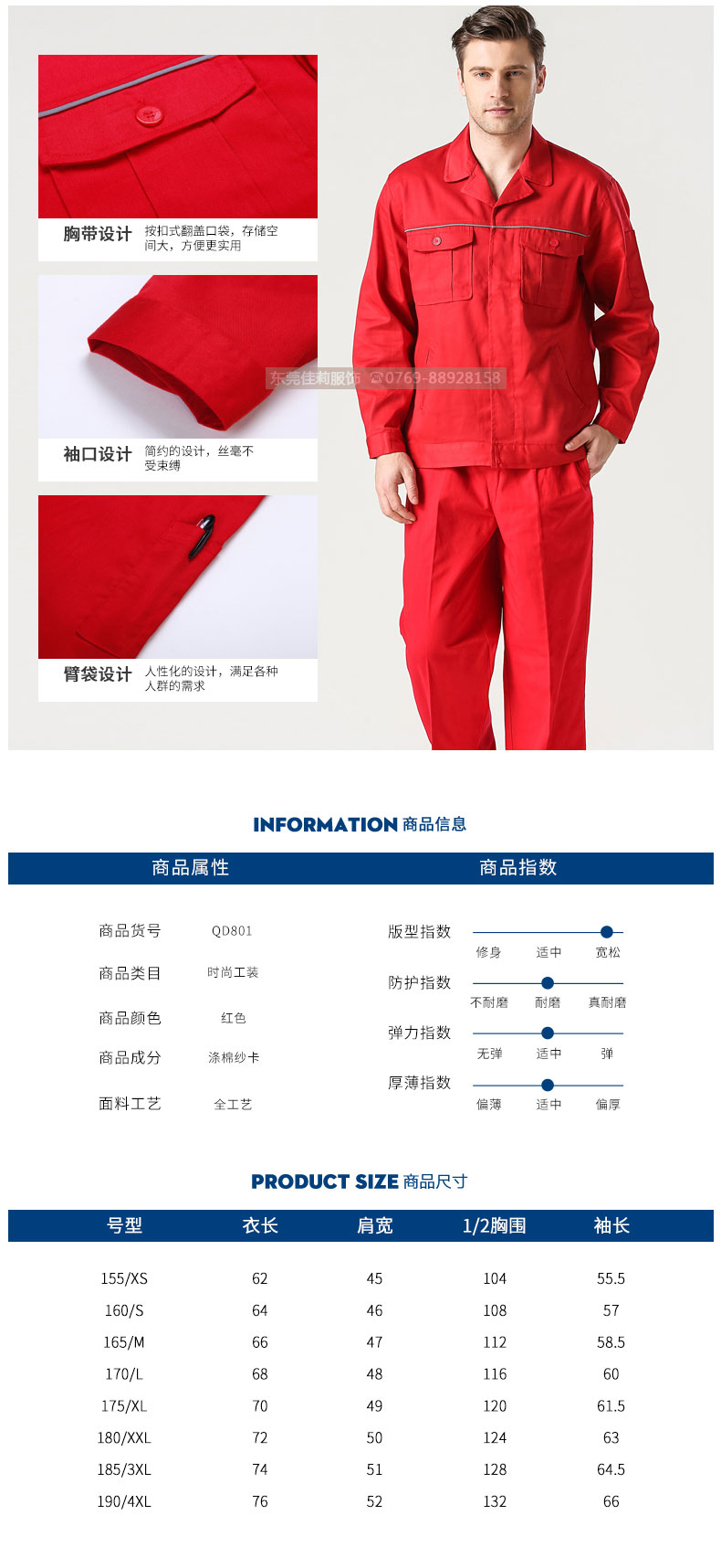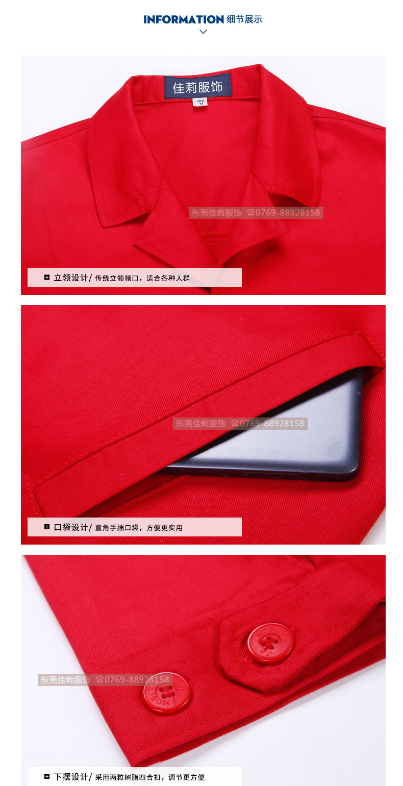 紅色電力工作服套裝 純棉工作服防靜電 JL-QD370