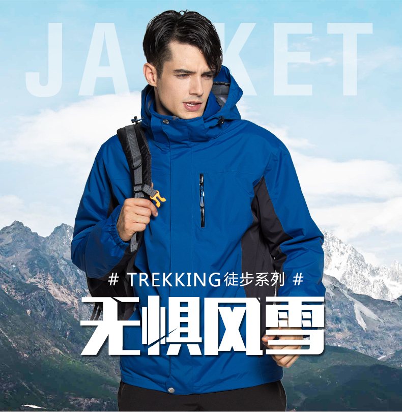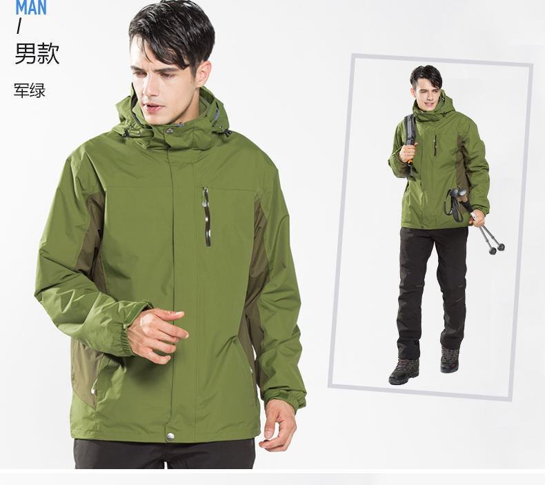 防風(fēng)防雨,鎖溫保暖,腋下透氣網(wǎng)洞,3合1沖鋒衣,內(nèi)膽可拆卸